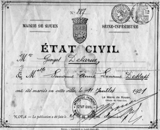 Il se maria en juillet 1921 avec Simone, Anne, Lucienne DESSAPT (1902-1994).