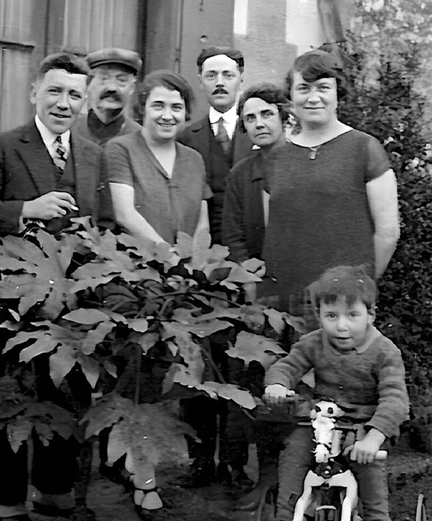 On reconnait : M.X, Alfred, Yvonne Boucaud (soeur de Henriette), Robert, Marthe, Mme X, Michel (enfant)