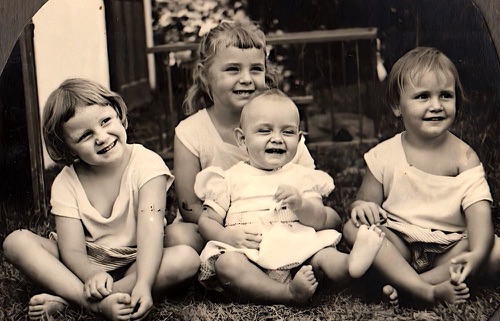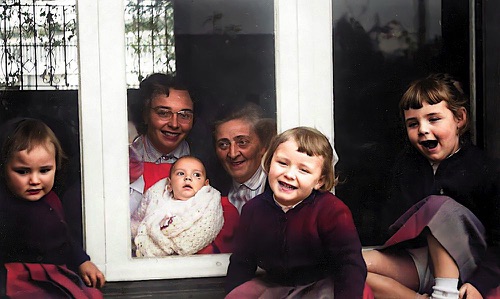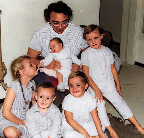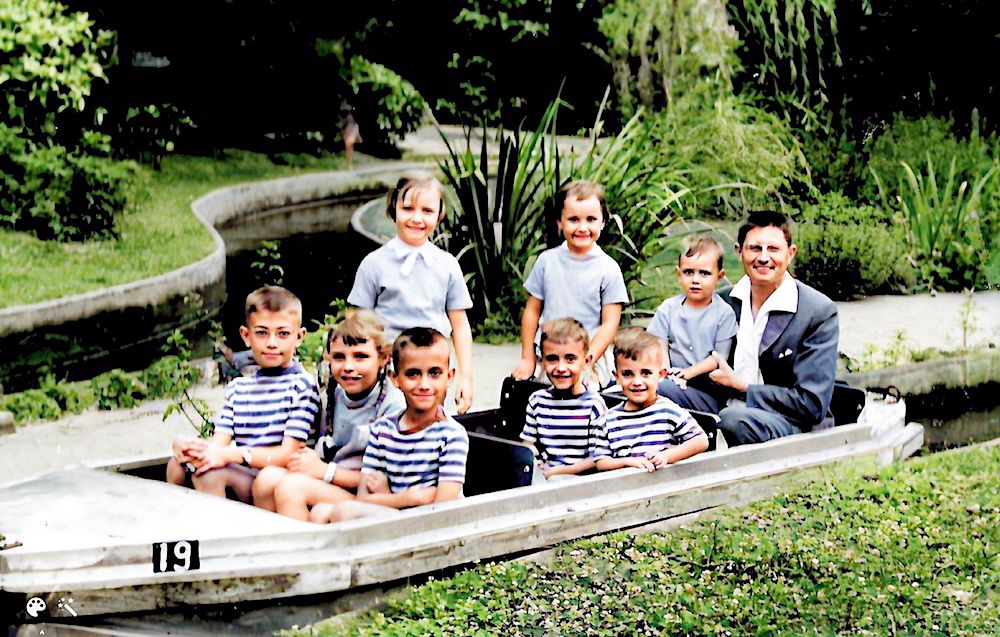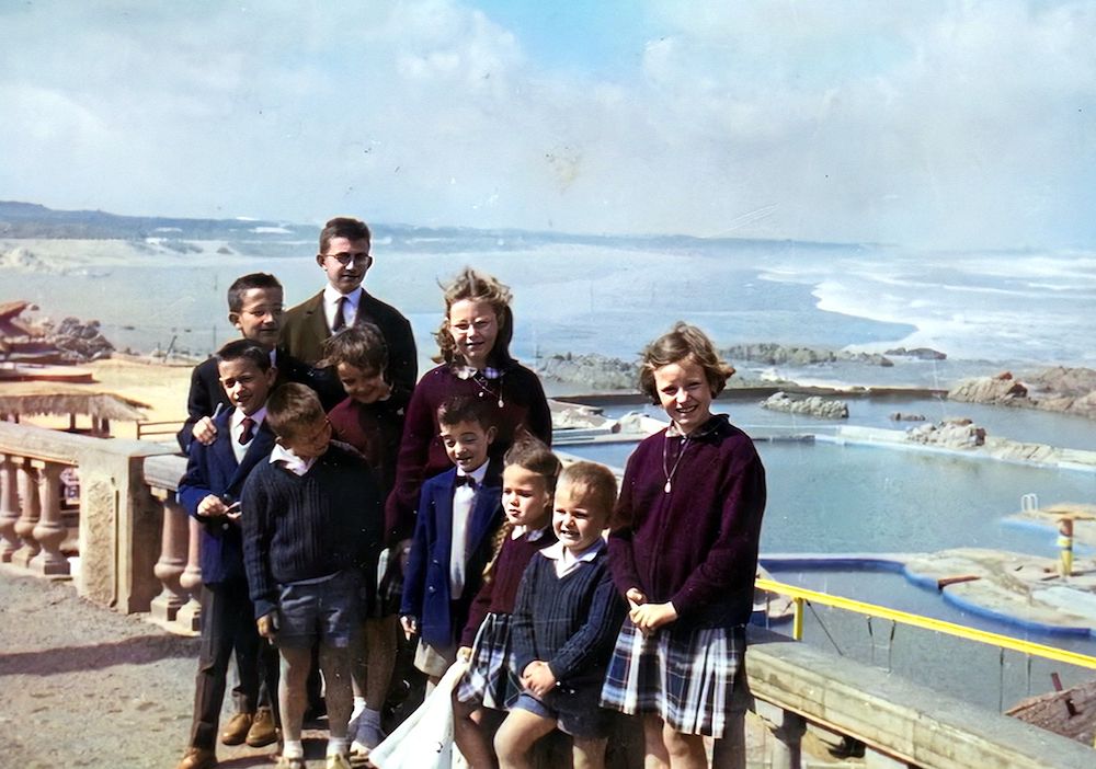 Pic du Midi - 1965 On reconnait : Pierre-Yves -Bruno - Totota - Florence sur capot - Christian - Véro - Jacques et la Pontiac